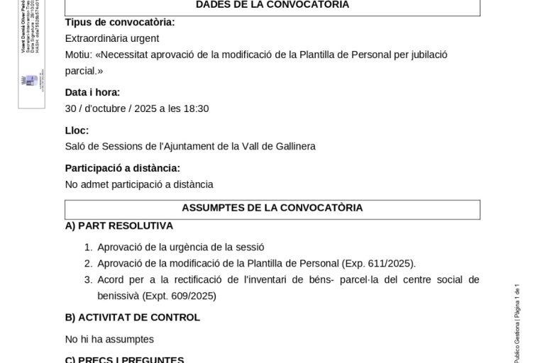 Correo: ajuntament@valldegallinera.esPunto de Información Catastral: