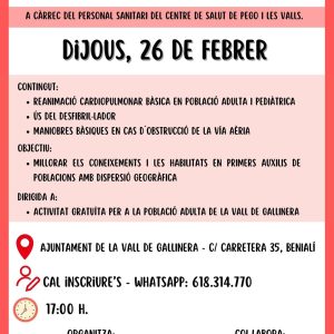 TALLER TEÒRIC-PRÀCTIC DE PRIMERS AUXILIS. 26 DE FEBRER