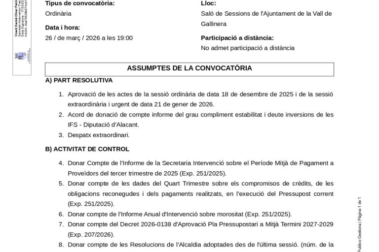 Correu: ajuntament@valldegallinera.esPunt d'informació cadastral: