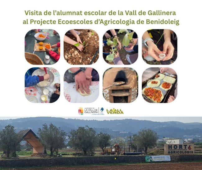 L’Ajuntament de la Vall de Gallinera organitza una eixida escolar al Projecte Ecoescoles de Benidoleig Setmanes passades l’alumnat de l’escola Joanot Martorell de la Vall de Gallinera visità el Projecte Ecoescoles d’Agricologia, situat a Benidoleig. Aquesta eixida escolar és la segona acció educativa del projecte mediambiental “La Vall Verda”, organitzat per l’Ajuntament de la Vall…