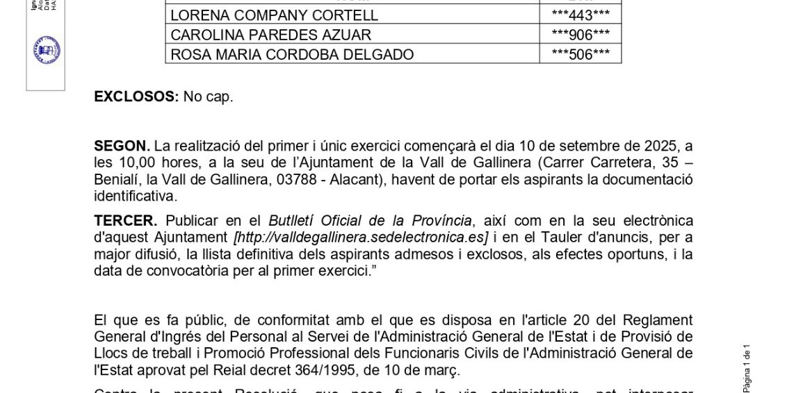 ANUNCIO LISTA DEFINITIVA CANDIDATOS Y PUBLICACIÓN DE LAS FECHAS DE EXAMEN DEL PROCESO PARA LA PROVISIÓN DE UNA PLAZA DE PERSONA LABORAL FIJO DE PERSONAL DE LIMPIEZA, MEDIANTE EL SISTEMA DE CONCURSO-OPOSICIÓN