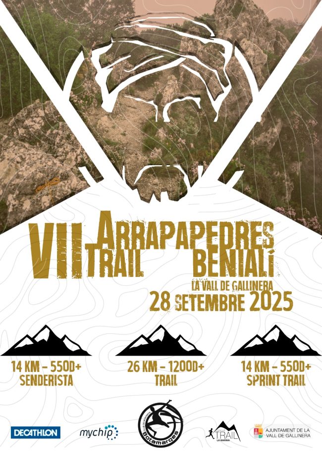VII ARRAPAPEDRES BENIALÍ ( LA VALL DE GALLINERA ) 28 DE SETEMBRE 2025 https://inscripciones.mychip.es/es/evento/arrapapedres-2025-beniali