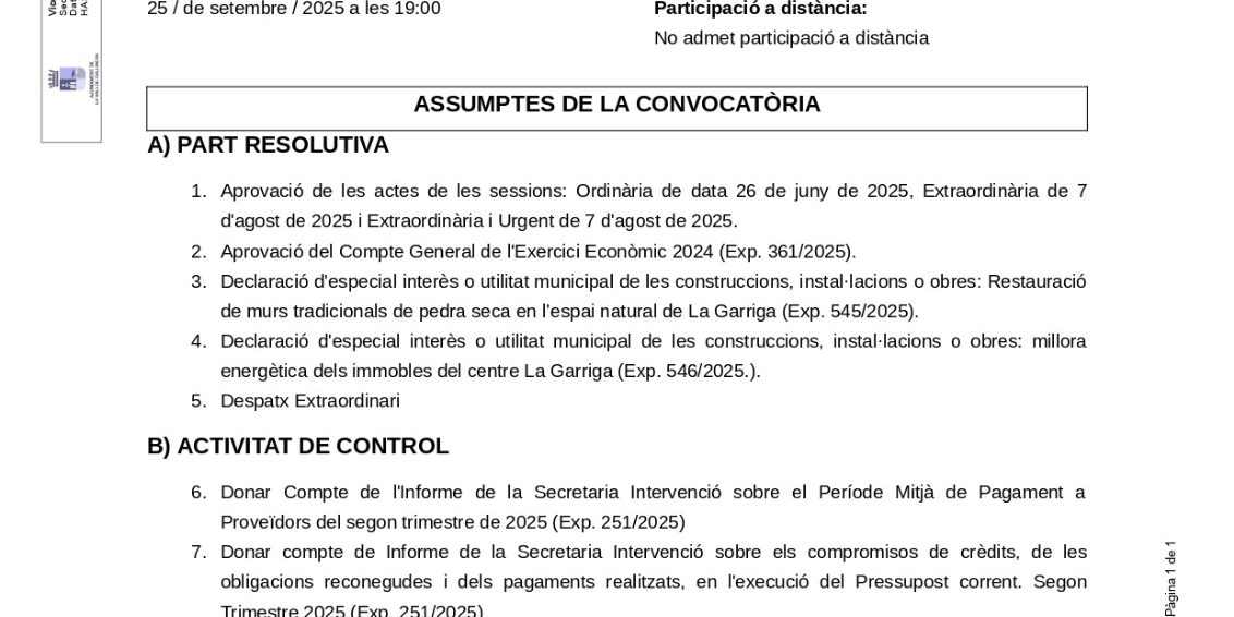 set.182025Ban municipal Category: Ban municipal18 setembre 2025Post navigationPreviousPrevious post:Inscripción a las actividades para la gente mayor de Vall de Gallinera 2025-2026NextNext post:CONVOCATORIA PLENO EXTRAORDINARIO 25 DE SEPTIEMBRE