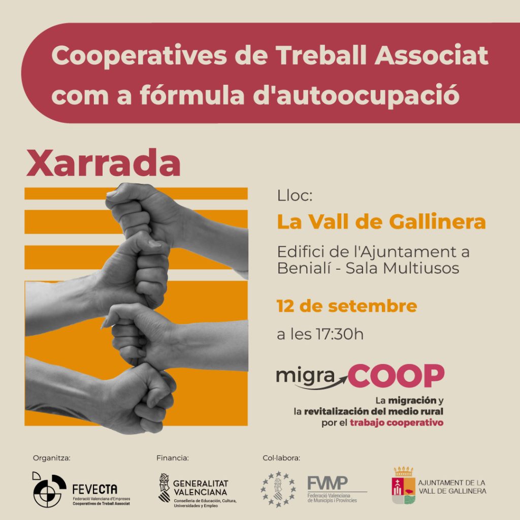 Home Eventos CHARLA: Cooperativas de Trabajo Asociado como fórmula de autoocupación CHARLA: Cooperativas de Trabajo Asociado como fórmula de autoocupación + Add to Google Calendar + iCal / Outlook export The event is finished. Date set. 12 2024 Expired! Time 17:30 - 19:00 Share this event