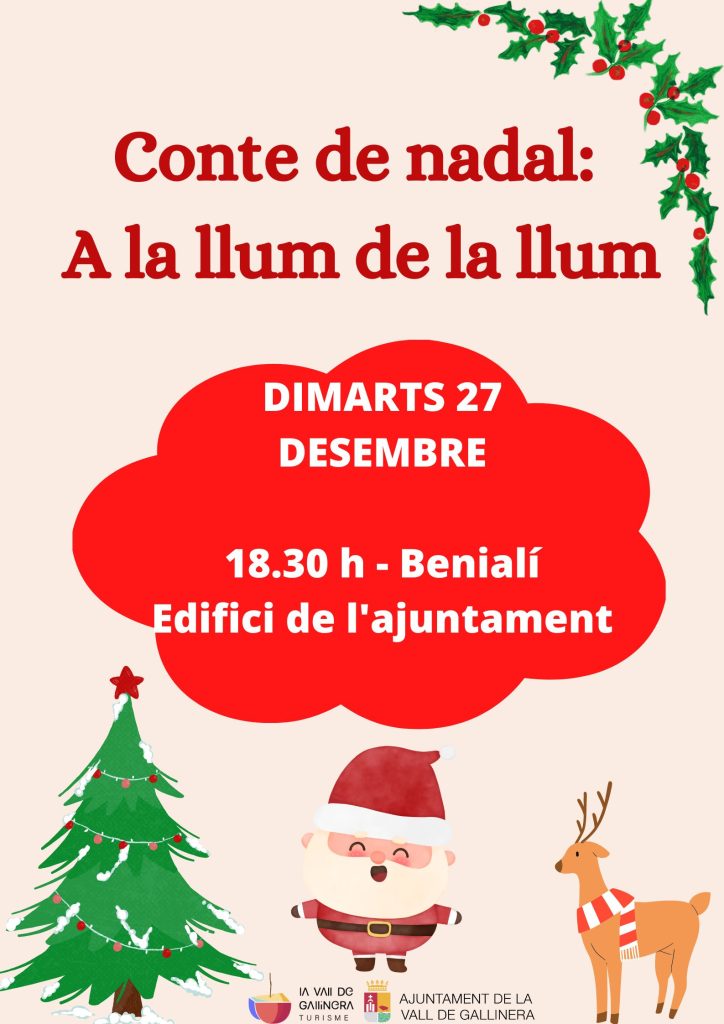 Home Eventos CUENTO DE NAVIDAD: A LA LLUM DE LA LLUM CUENTO DE NAVIDAD: A LA LLUM DE LA LLUM + Add to Google Calendar + iCal / Outlook export The event is finished. Date des. 27 2022 Expired! Time 18:00 - 20:00 Share this event