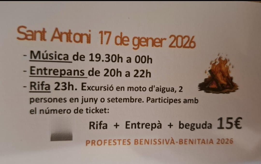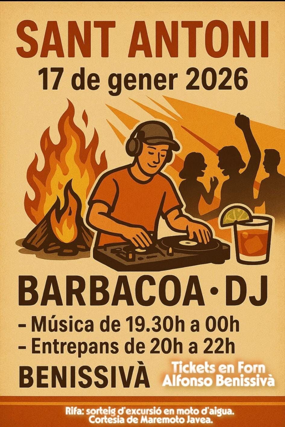 Home Eventos FESTA SANT ANTONI 17 GENER 2026 FESTA SANT ANTONI 17 GENER 2026 + Add to Google Calendar + iCal / Outlook export 00 days 00 hours 00 minutes 00 seconds Date Jan 17 2026 Time 19:30 - 23:30 Share this event