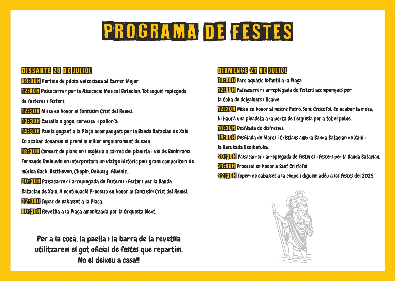 Home Eventos FESTES DE BENIRRAMA 2025 FESTES DE BENIRRAMA 2025 + Add to Google Calendar + iCal / Outlook export The event is finished. Date jul. 22 - 27 2025 Expired! Time 08:00 - 23:55 Share this event