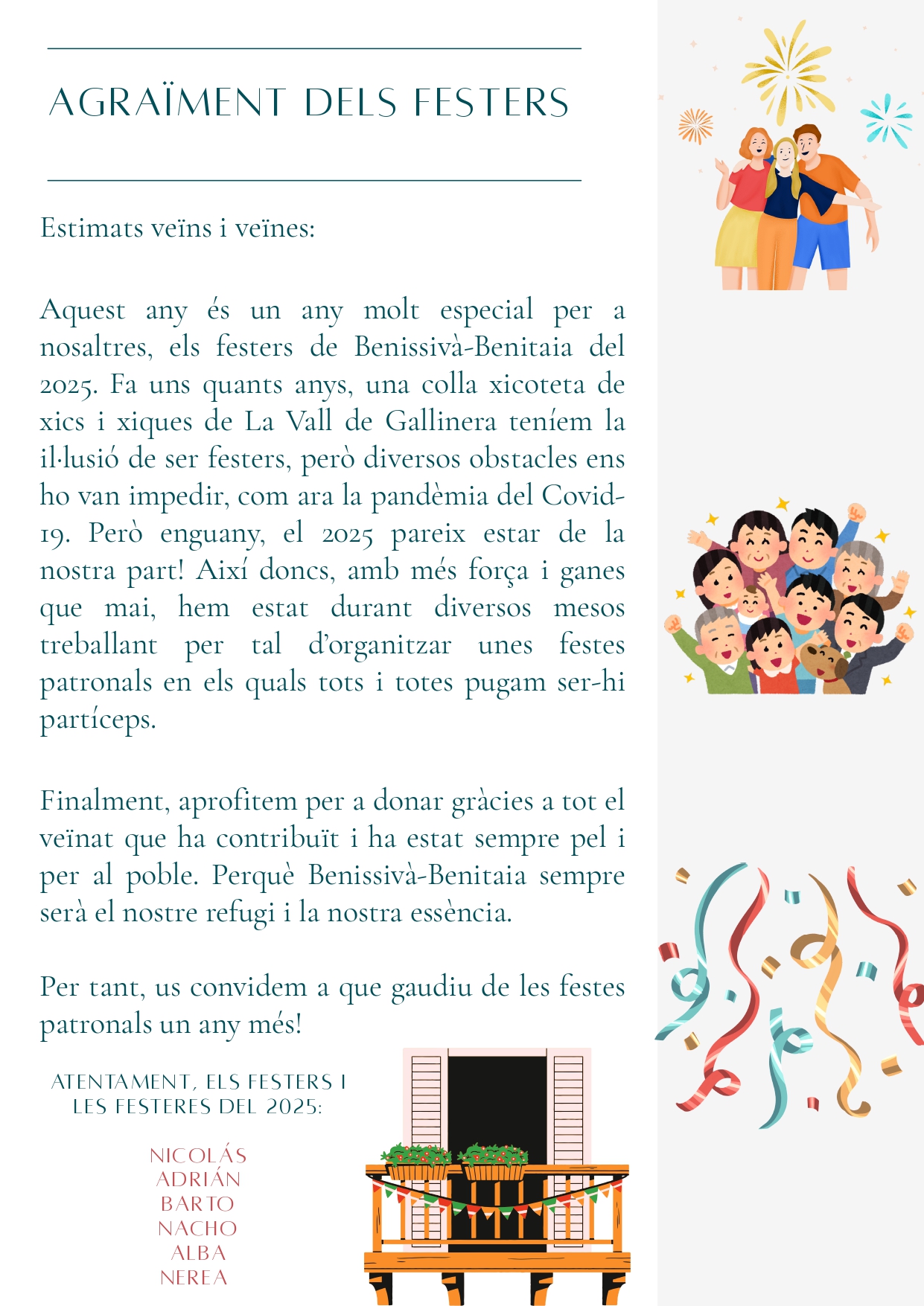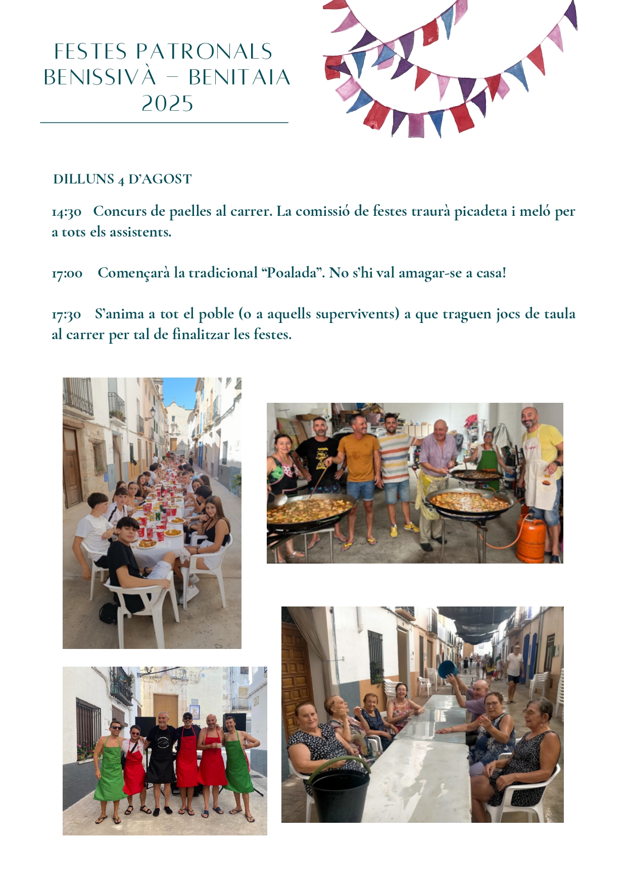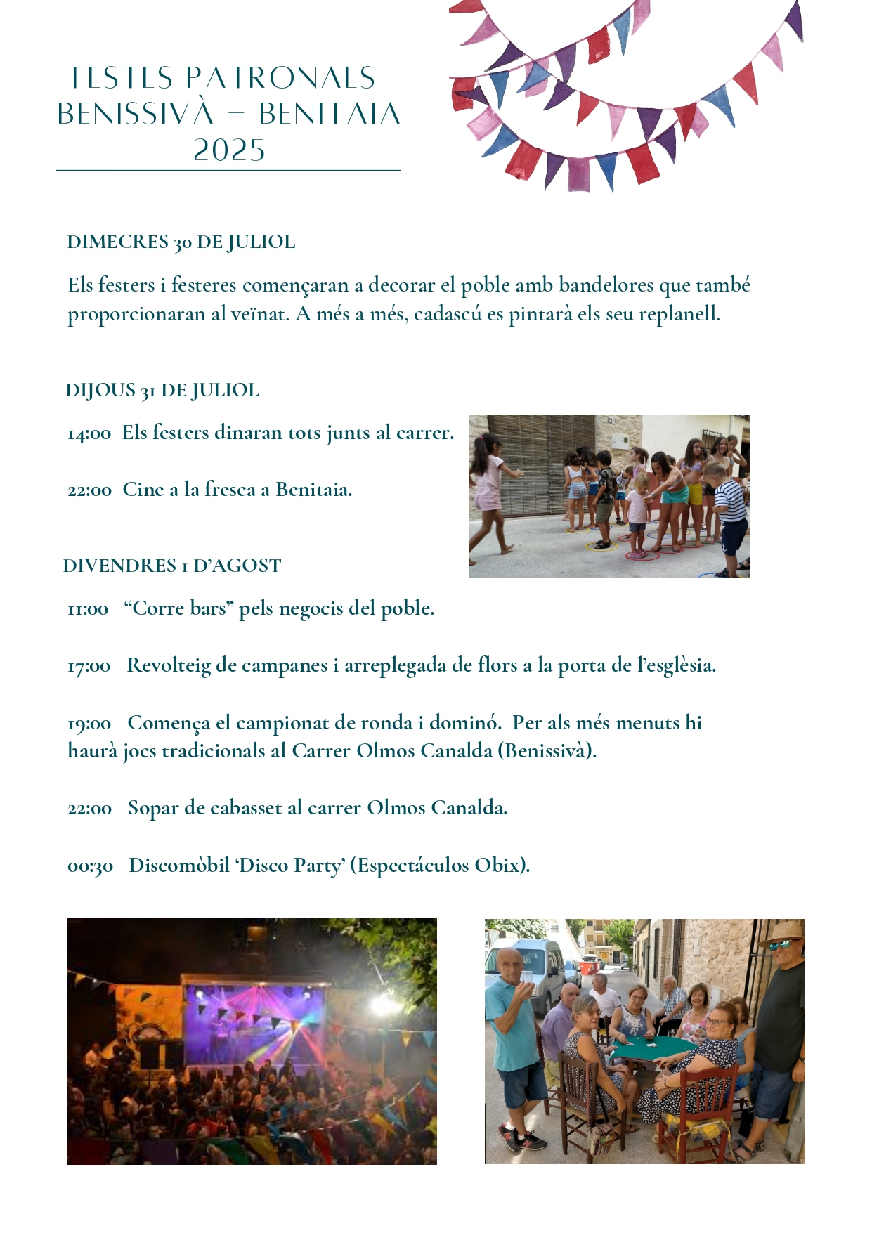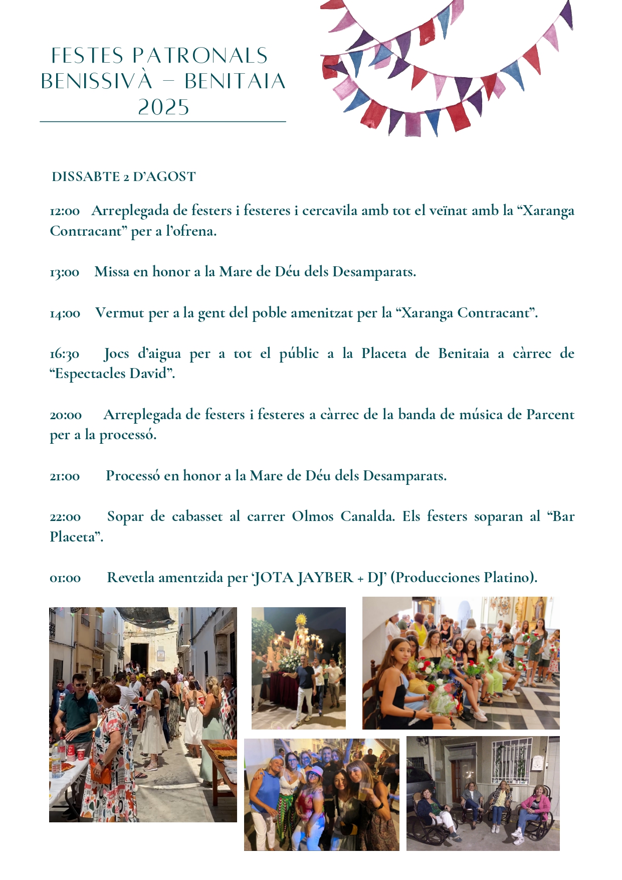 Home Eventos FESTES DE BENISSIVÀ I BENITAIA 2025 FESTES DE BENISSIVÀ I BENITAIA 2025 + Add to Google Calendar + iCal / Outlook export The event is finished. Date jul. 30 2025 - ag. 04 2025 Expired! Time 20:00 - 18:00 Share this event