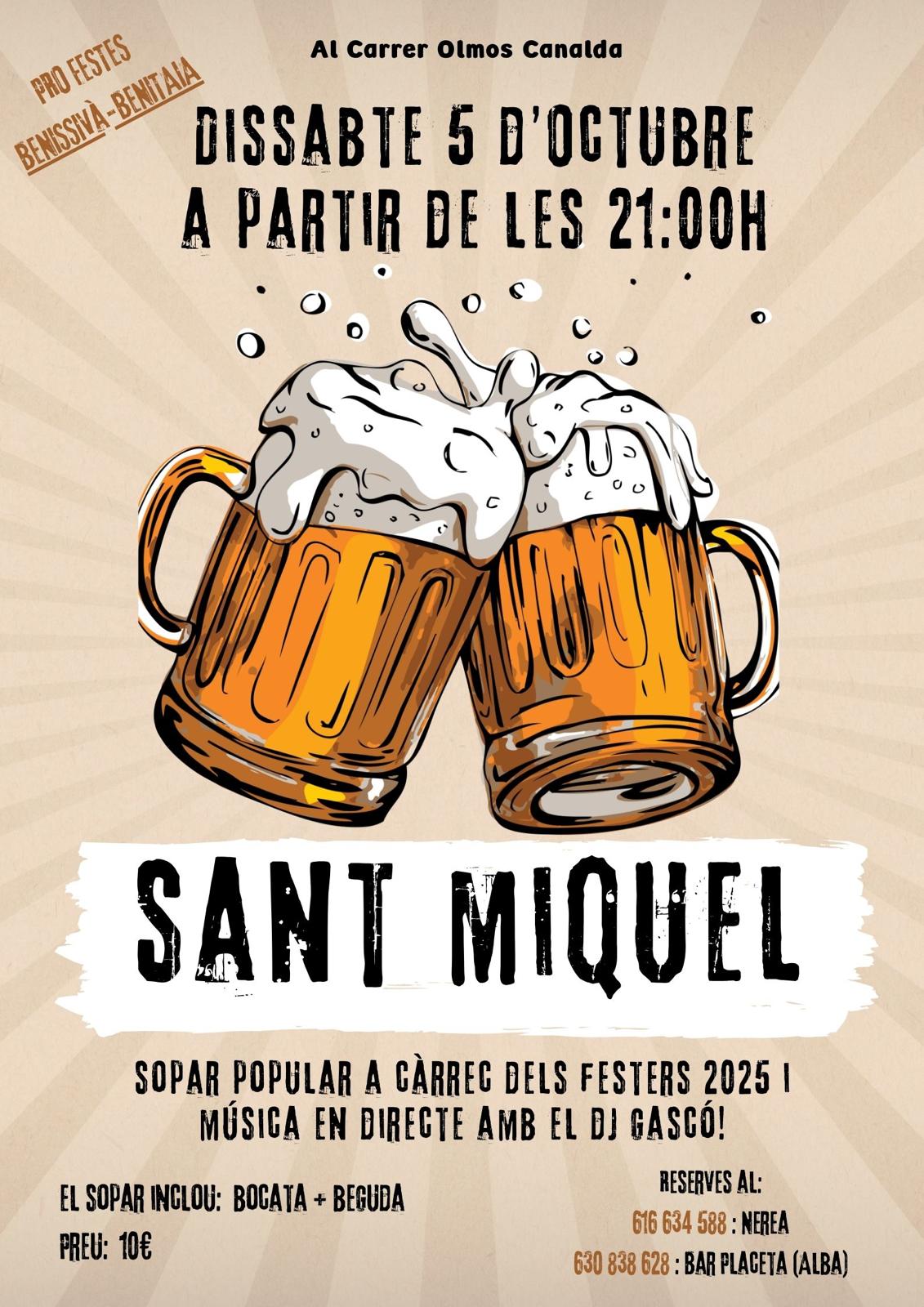 Home Eventos FIESTA DE SAN MIGUEL EN BENISSIVÀ FIESTA DE SAN MIGUEL EN BENISSIVÀ + Add to Google Calendar + iCal / Outlook export The event is finished. Date oct. 05 2024 Expired! Time 21:00 - 23:55 Share this event