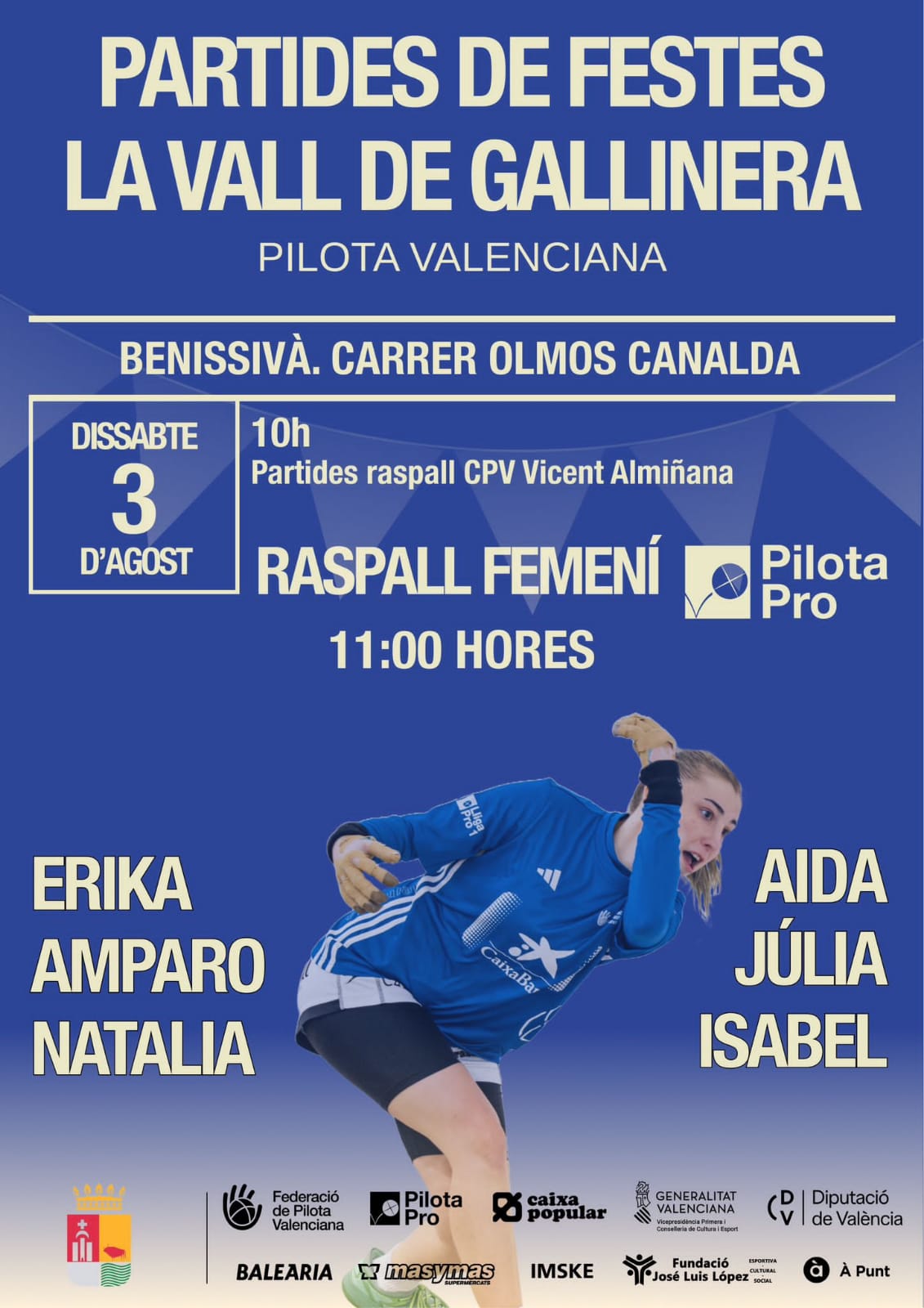 Home Eventos PARTIDAS DE PILOTA DE FIESTAS PARTIDAS DE PILOTA DE FIESTAS + Add to Google Calendar + iCal / Outlook export The event is finished. Date jul. 03 2024 Expired! Time 10:00 - 13:00 Share this event