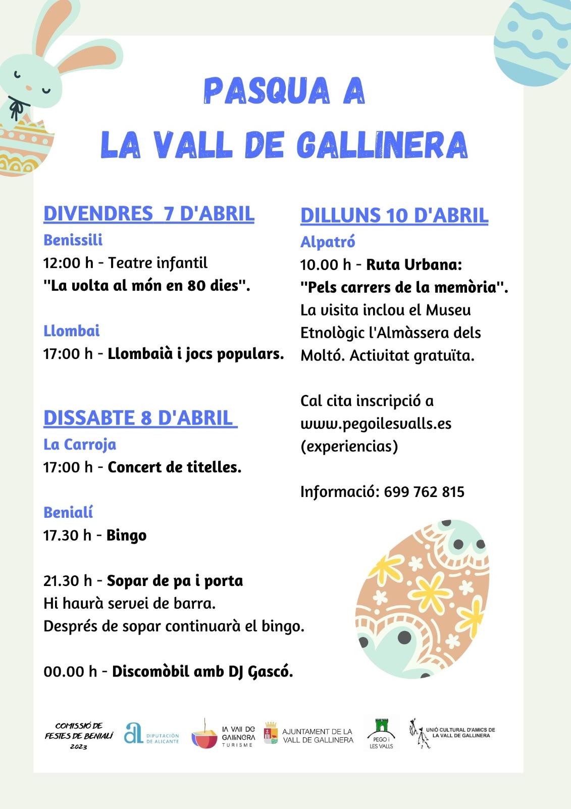 Home Eventos PASCUA A LA VALL DE GALLINERA PASCUA A LA VALL DE GALLINERA + Add to Google Calendar + iCal / Outlook export The event is finished. Date abr. 07 - 10 2023 Expired! Time 12:00 - 12:00 Share this event