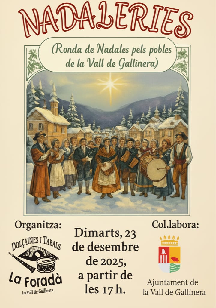 Home Eventos Ronda de Nadales pels pobles de la Vall de Gallinera Ronda de Nadales pels pobles de la Vall de Gallinera + Add to Google Calendar + iCal / Outlook export 00 days 00 hours 00 minutes 00 seconds Date Dec 23 2025 Time 17:00 - 20:00 Share this event