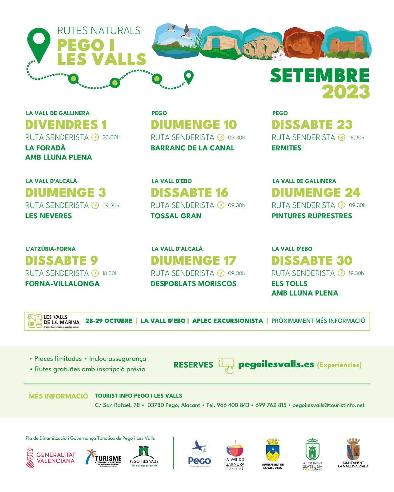 Home Eventos RUTES NATURALS PEGO I LES VALLS SETEMBRE 2023 RUTES NATURALS PEGO I LES VALLS SETEMBRE 2023 + Add to Google Calendar + iCal / Outlook export The event is finished. Date set. 01 - 30 2023 Expired! Time 20:00 - 20:00 Share this event