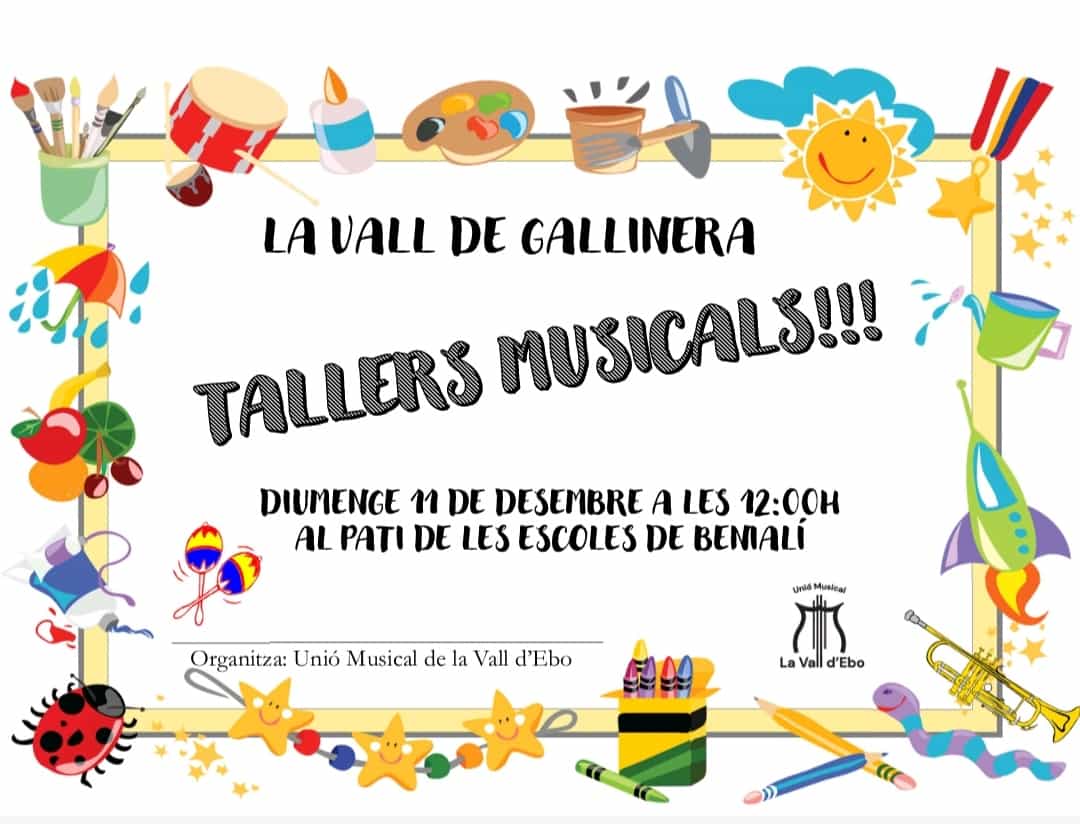 Home Eventos TALLERES MUSICALES TALLERES MUSICALES TALLERES MUSICALES DOMINGO 11 DE DICIEMBRE A LAS 12 H AL PATIO DE LA ESCUELA DE BENIALÍ https://www.lavalldegallinera.org/wp-content/uploads/2022/12/VID-20221205-WA0016.mp4 + Add to Google Calendar + iCal / Outlook export The event is finished. Date des. 11 2022 Expired! Time 12:00 - 17:00 Share this event