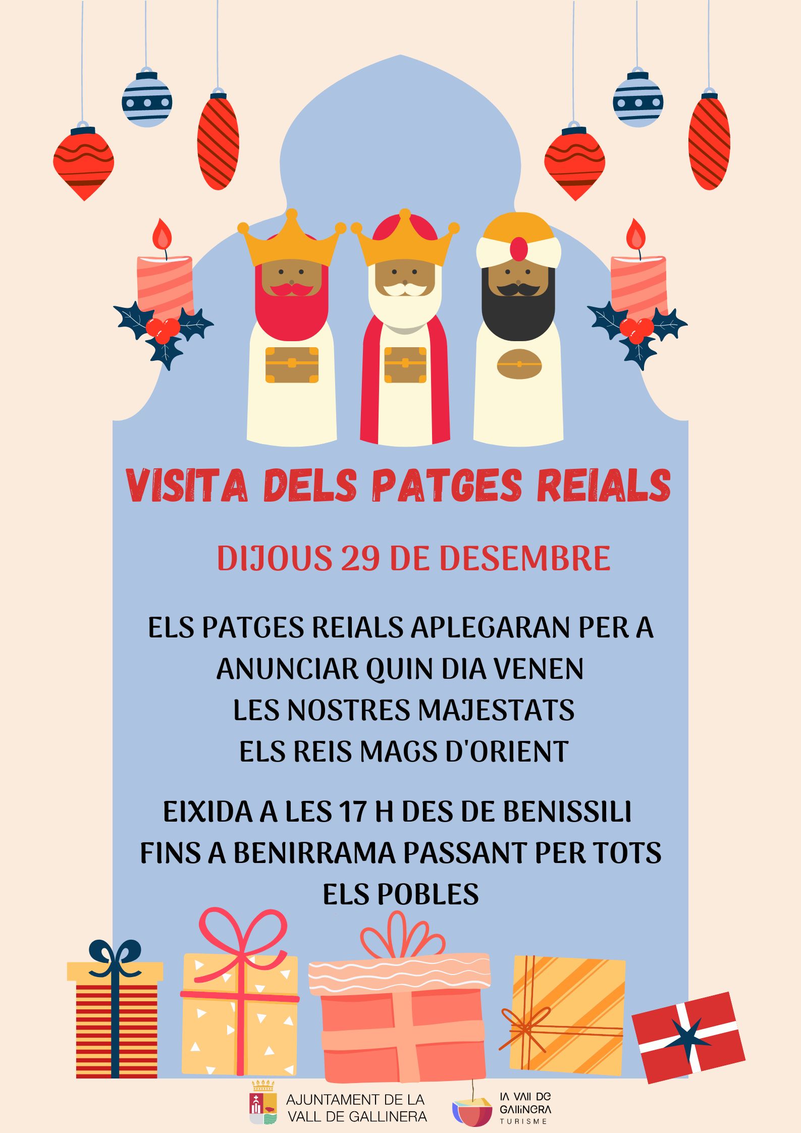 Los Pajes Reales vendrán para anunciar qué día llegarán nuestras majestades Reyes Magos de Oriente.