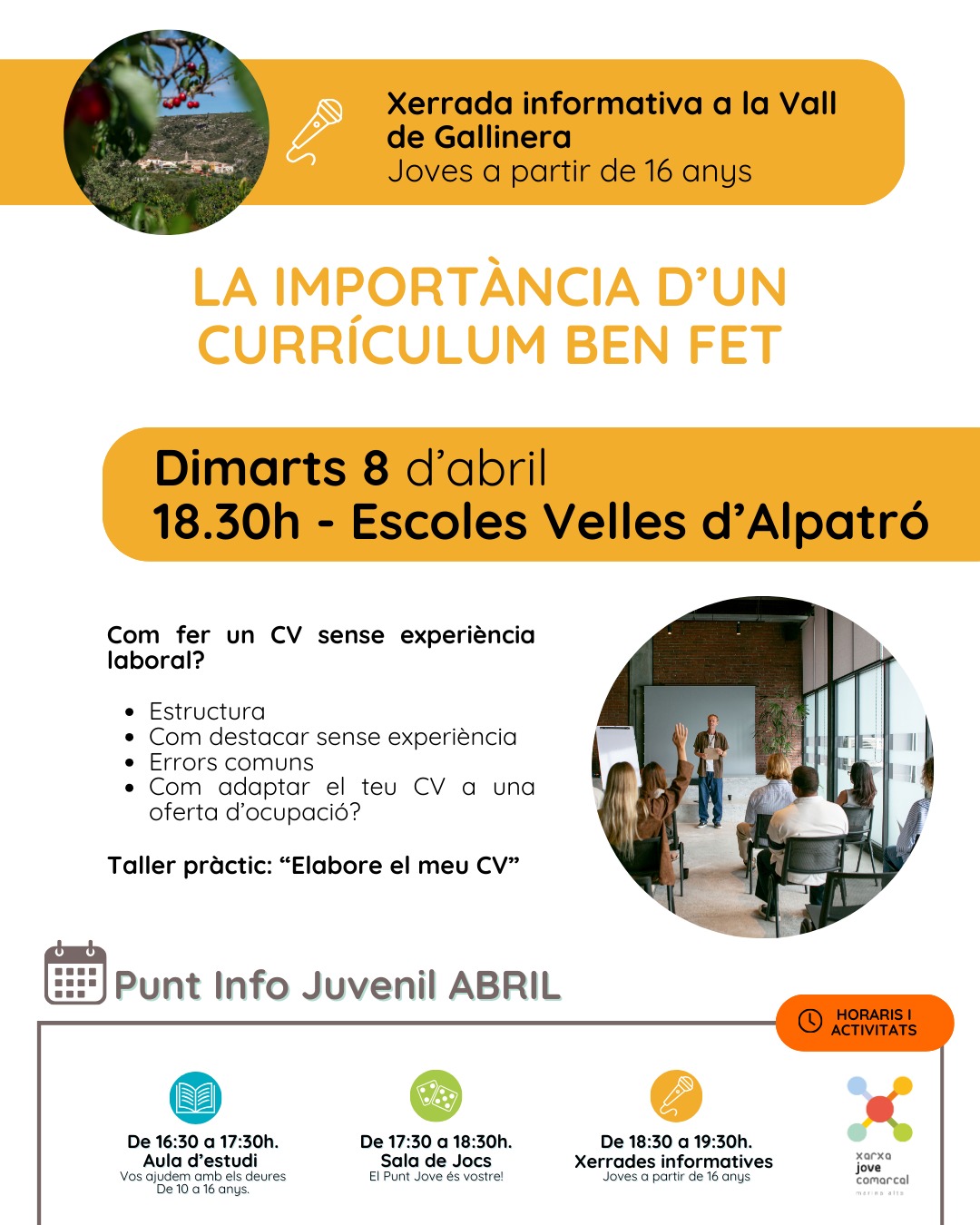 3. Taller de currículums (CV)! 📝 Aprèn a preparar el teu CV de manera professional.