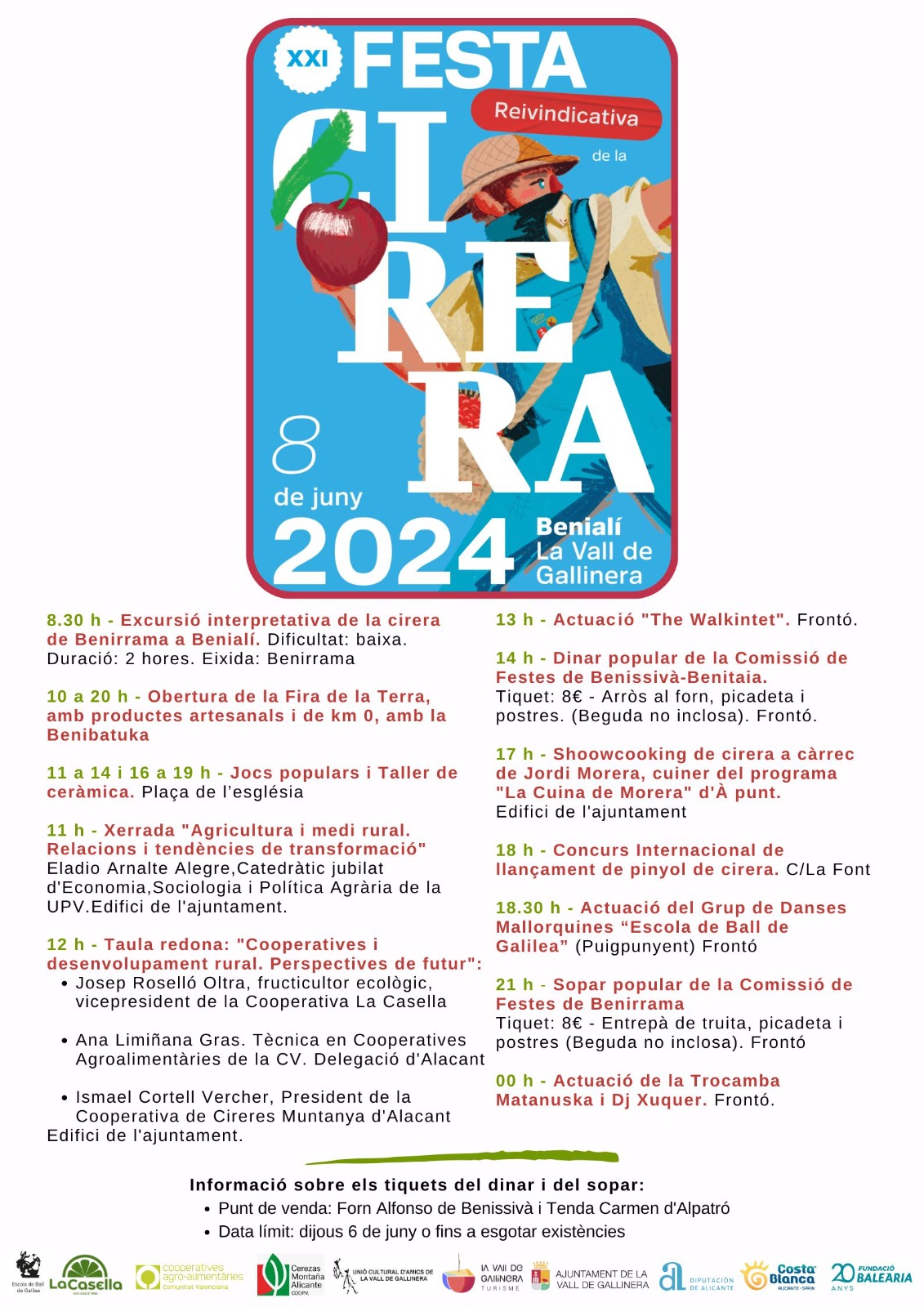 Home Eventos XXI FESTA DE LA CIRERA XXI FESTA DE LA CIRERA + Add to Google Calendar + iCal / Outlook export The event is finished. Date juny 08 - 09 2024 Expired! Time 08:00 - 02:00 Share this event