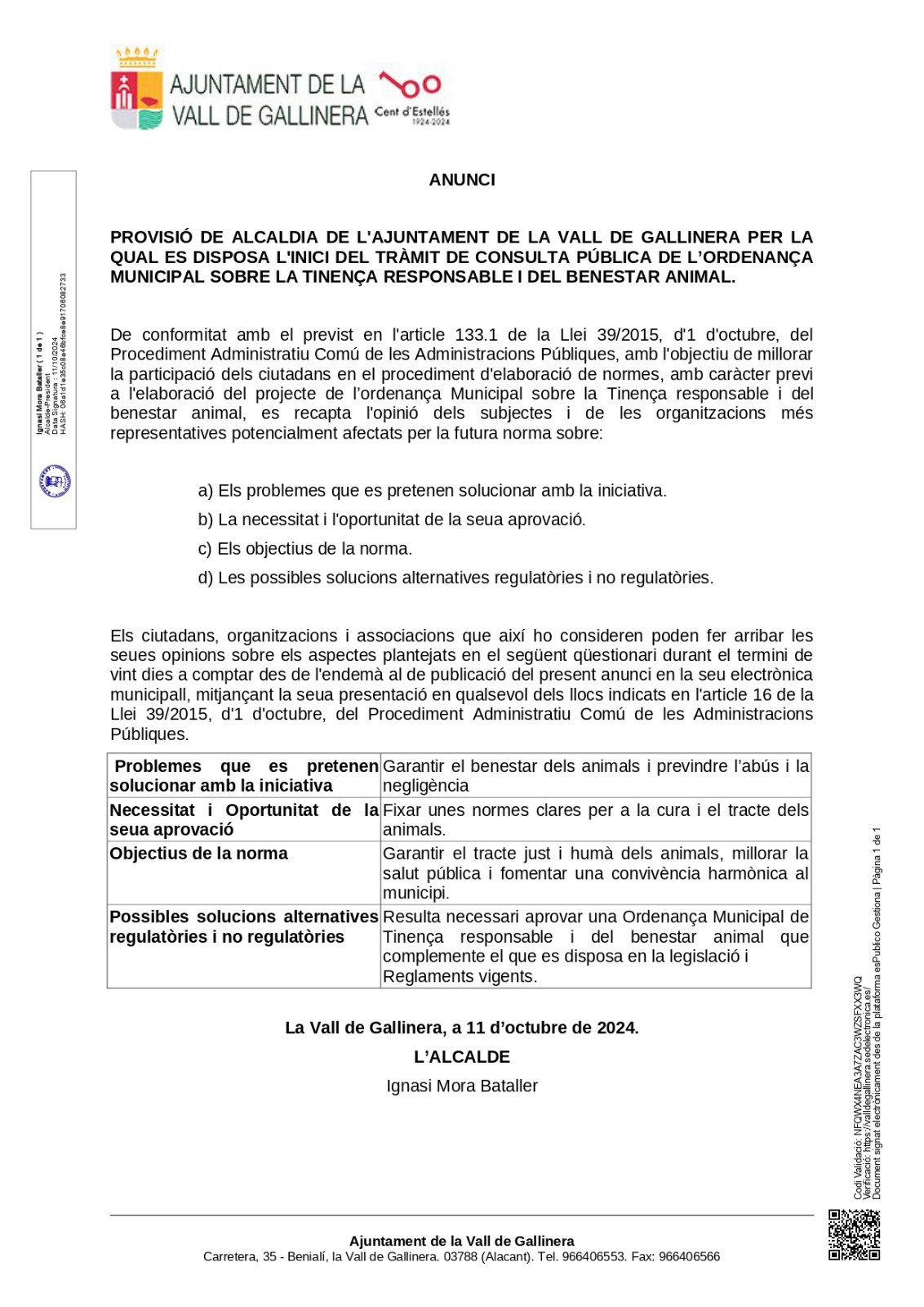 INICI DEL TRÀMIT DE CONSULTA PÚBLICA DE L’ORDENANÇA MUNICIPAL SOBRE LA TINENÇA RESPONSABLE I DEL BENESTAR ANIMAL