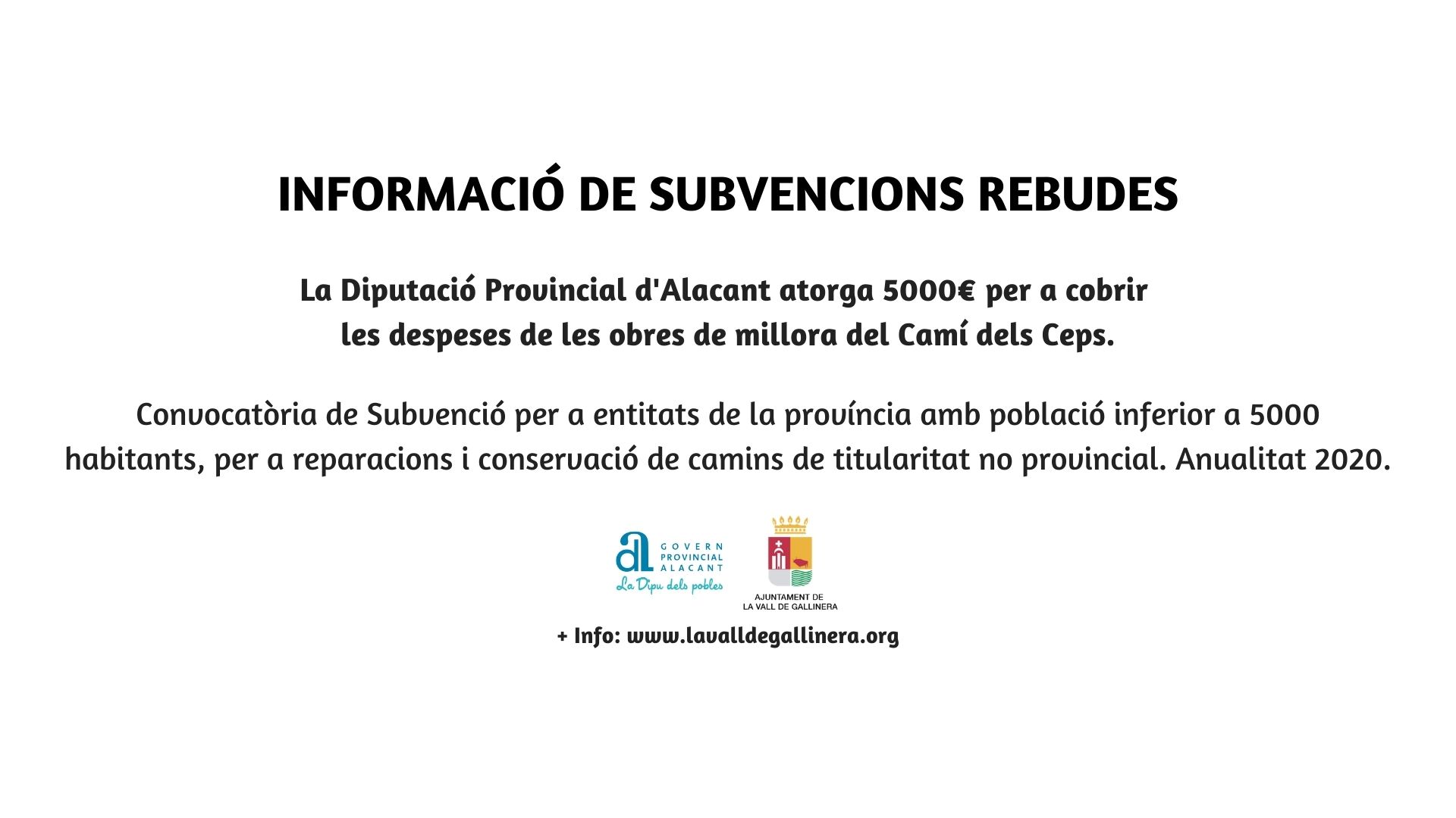 Informació Category: Subvencions rebudes12 novembre 2020Post navigationPreviousPrevious post:La Diputació Provincial d’Alacant atorga 7495.95€ per a cobrir les despeses del restabliment de la vialitat del camí del Xap, Ombría d’Alpatró …NextNext post:La Diputació Provincial d’Alacant atorga 4984.42€ per a cobrir les despeses de la reparació del motor i la bomba