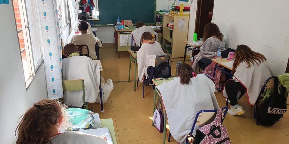 L’ajuntament entrega a l’alumnat de l’escola una manta, confeccionada a Ontinyent, per a pal·liar el fred degut a les mesures sanitàries de ventilació continua a les aules.