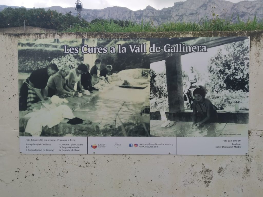 De aquellas entrevistas surgió la necesidad de visibilizar el antiguo uso que hacían las mujeres de nuestros lavaderos, una tarea doméstica invisibilizada a lo largo de los tiempos. Por ese motivo desde el Ayuntamiento de Vall de Gallinera inició la investigación de fotografías antiguas de mujeres utilizando los diversos lavaderos del municipio, siendo esta compilación fotográfica una exposición colectiva urbana en cada uno de los lavaderos, que fue inaugurada con motivo del 8 de Marzo y que actualmente todavía se puede disfrutar a los lavaderos de Benirrama, Benialí, Benissivà – Benitaia, La Carroja, Alpatró y Benissili.