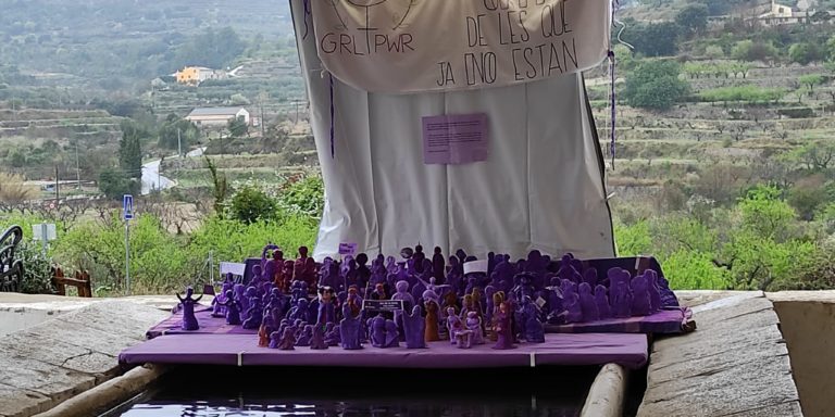 Amb motiu del 8 de març, el Col·lectiu Feminista de dones de la Vall de Gallinera ha organitzat una acció artística amb l’objectiu de visibilitzar els drets de la dona en totes les seues vessants. L’acció consisteix en la creació de figuretes de fang pintades de morat, que es poden observar al llavador d’Alpatró (la Vall…