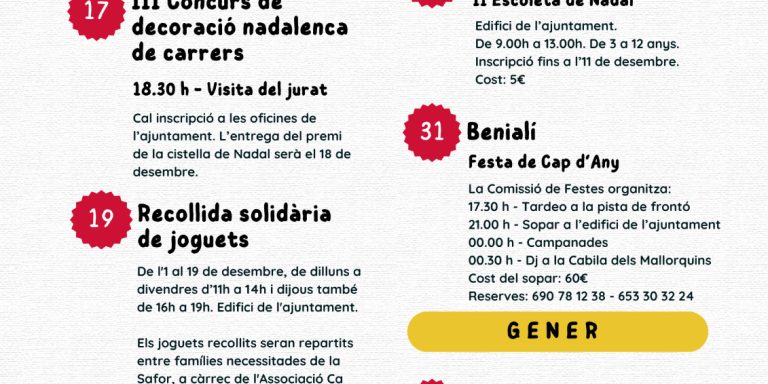 INFORMACIÓ SOBRE LA XXII FESTA DE LA CIRERA Amb motiu de les obres previstes per a Benissivà, corresponent a l’edifici de les antigues escoles i el futur parc del bancal d’enfront, i amb intenció de facilitar l’organització de la festa de la cirera tant en l’àmbit econòmic com de gestió d’infraestructures. Enguany la Festa de…