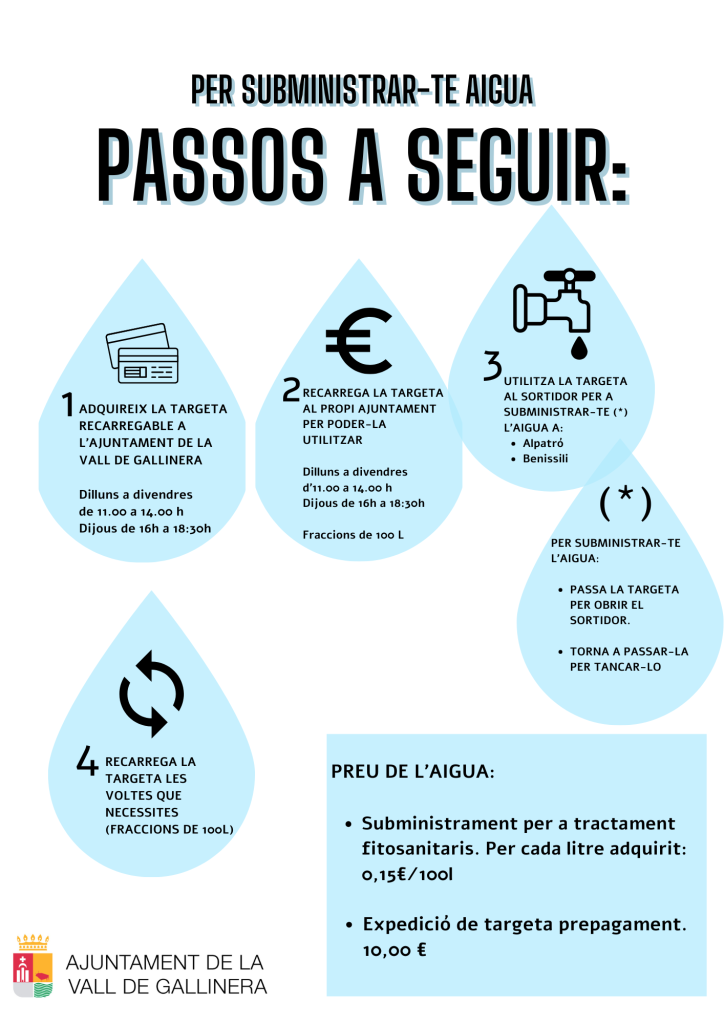 S’informa que s’ha canviat el sistema de subministrament d’aigua per a servei agrícola sent les pautes següents: