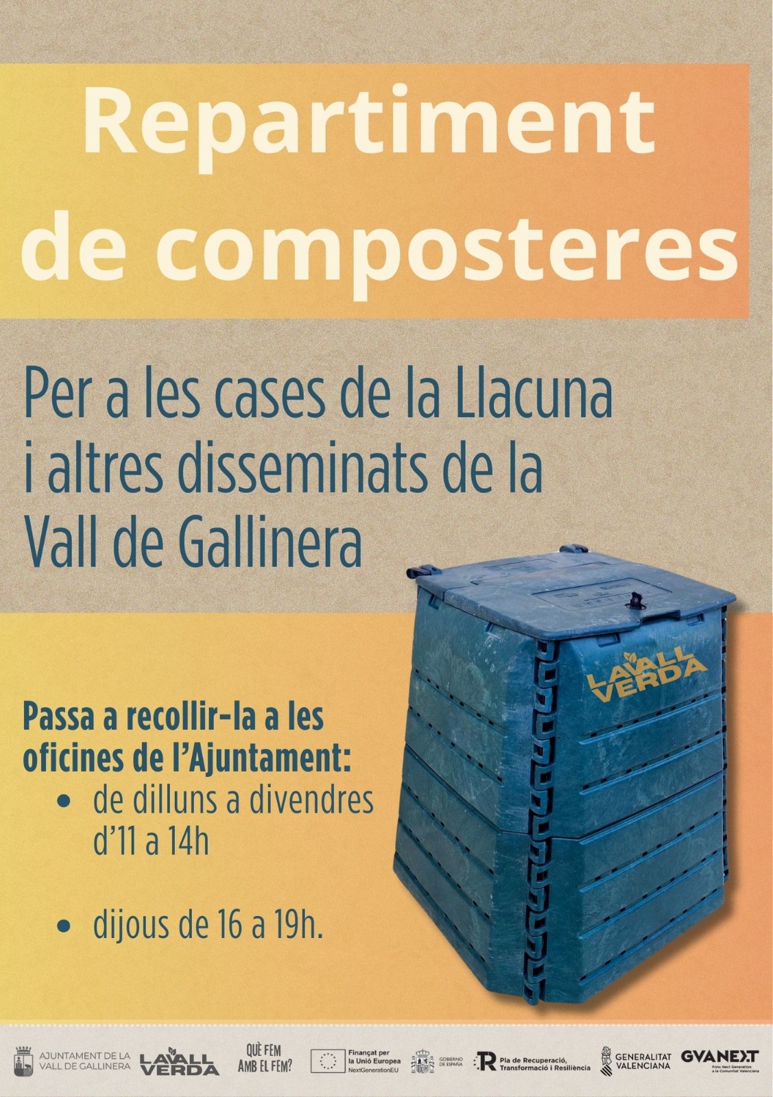 Repartiment de composteres per a les cases de La Llacuna i altres disseminats de la Vall de Gallinera.