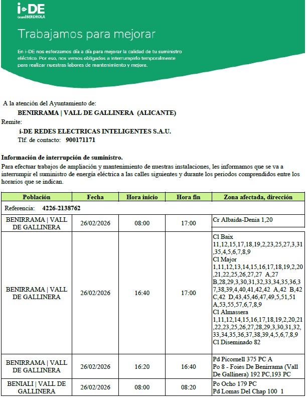 Feb242026Ban municipal Category: Ban municipal24 February 2026Post navigationPreviousPrevious post:Els llaços d’unió entre els pobles agermanats de la Vall de Gallinera i Puigpunyent es consoliden amb el I Intercanvi Cultural de la MediterràniaNextNext post:INFORMACIÓ PER AL VEÏNAT DE BENISSIVÀ